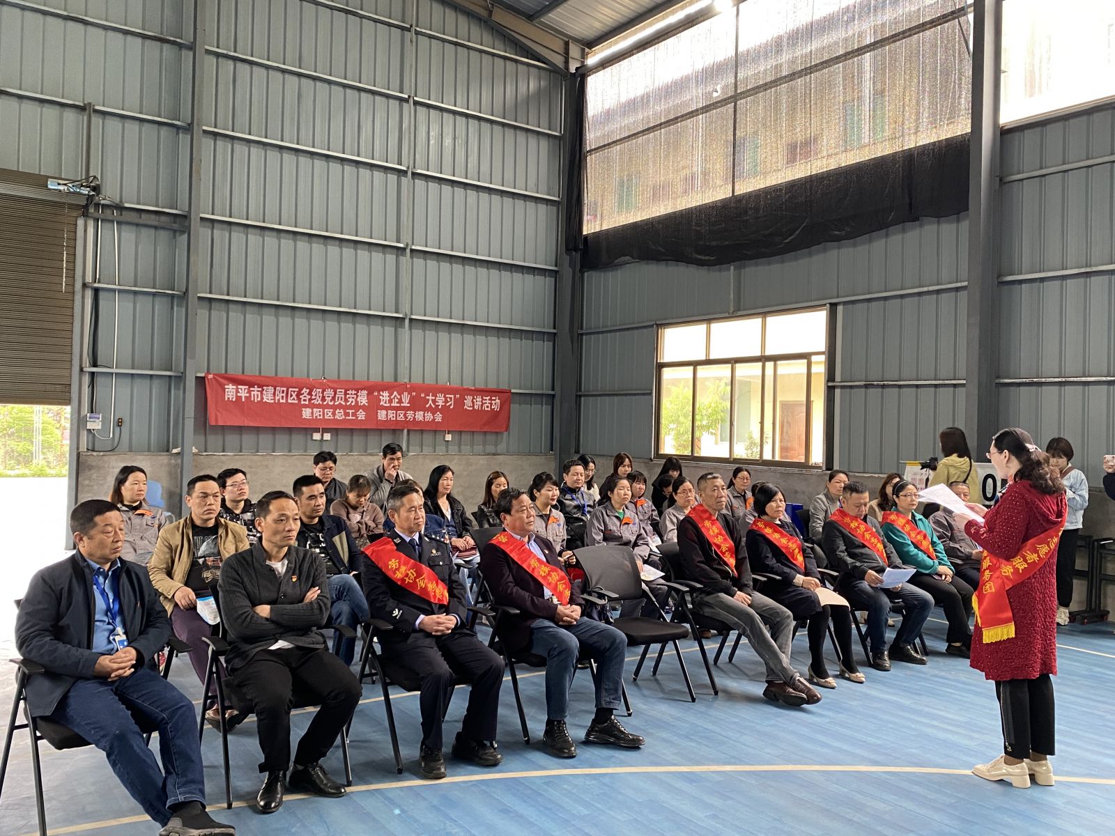 2021年04月08日下午,南平市建陽區(qū)各級黨員勞模到我司開展“進企業(yè)”“大學(xué)習(xí)”巡講活動,公司工會主席陳忠毅、副總周遠慧及20余名員工參加了本次活動。
