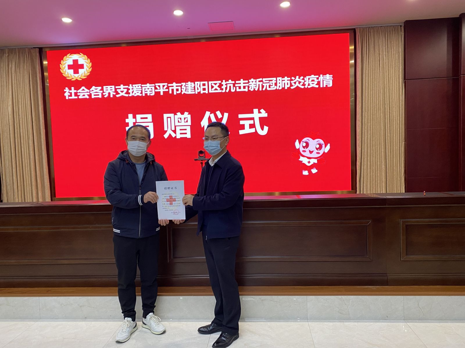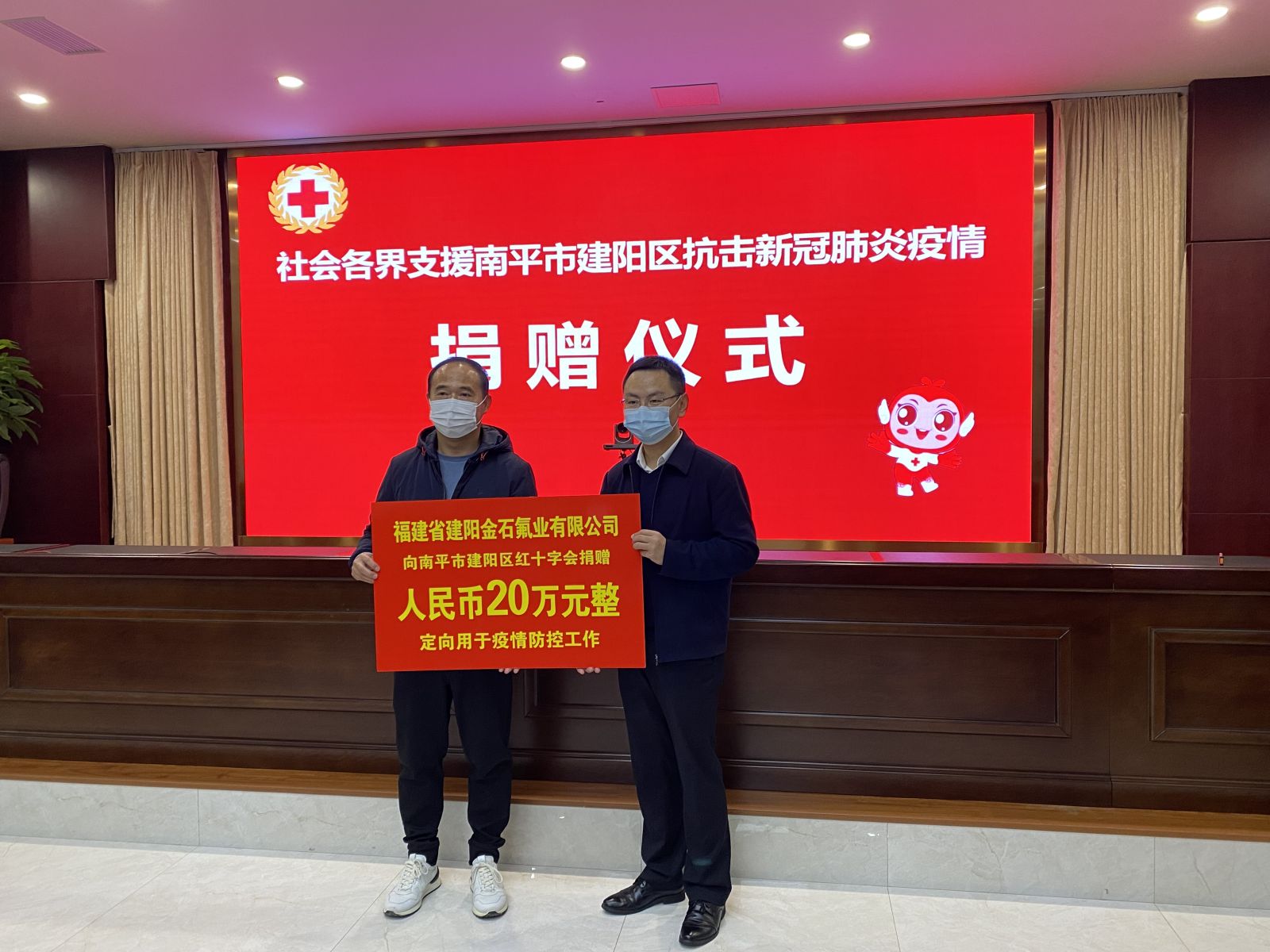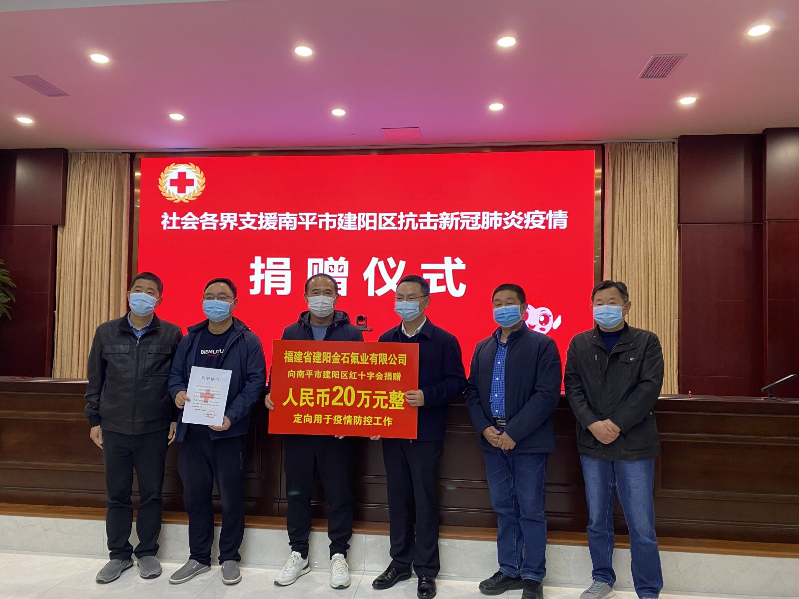 我司向南平市建陽區(qū)紅十字會捐贈20萬元人民幣
